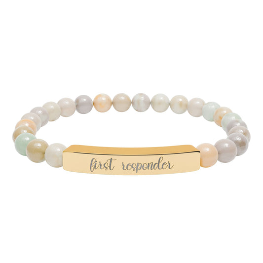 First Responder Natural Stone Engraved Bar Bracelet
