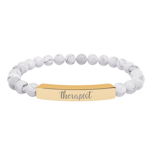 Therapist Natural Stone Engraved Bar Bracelet