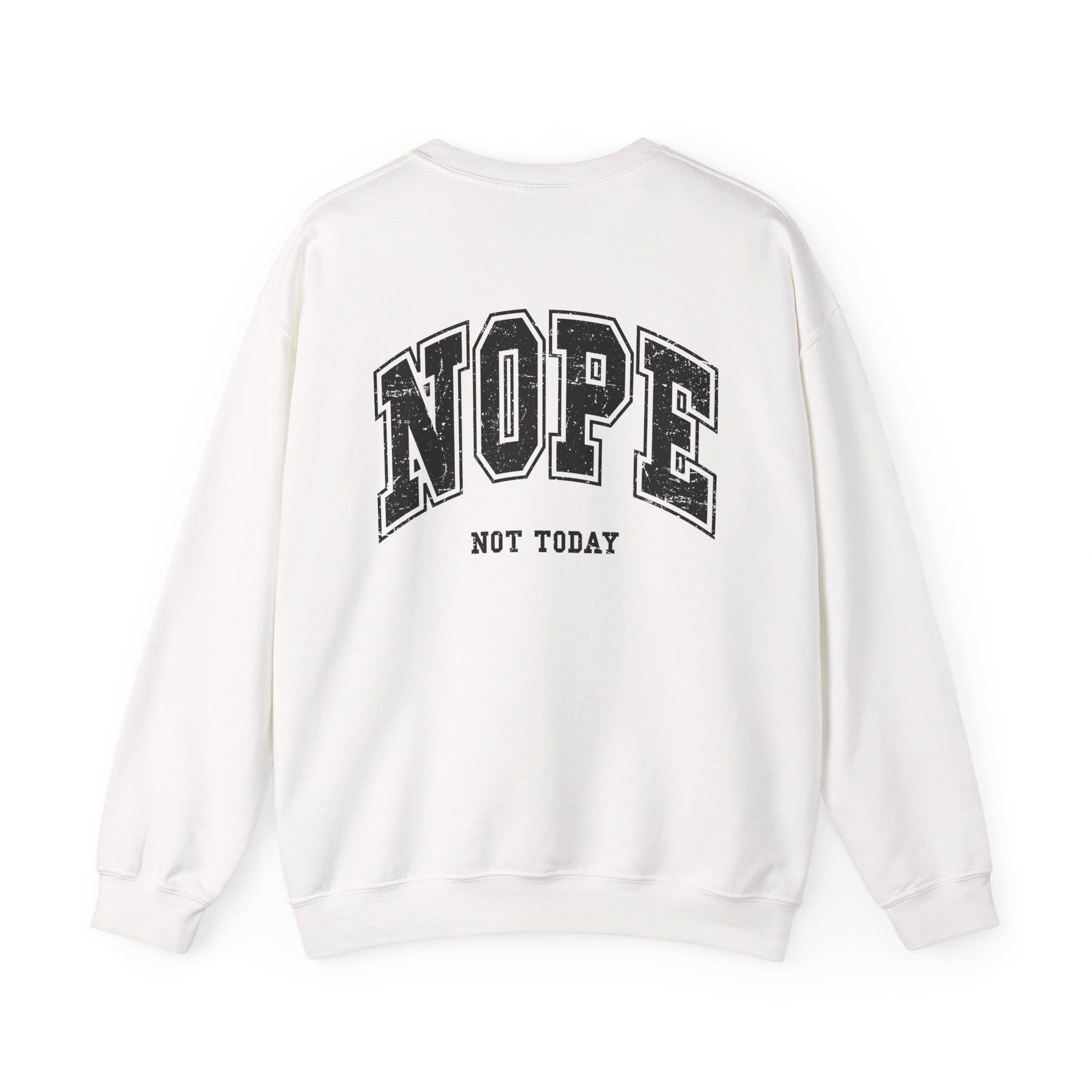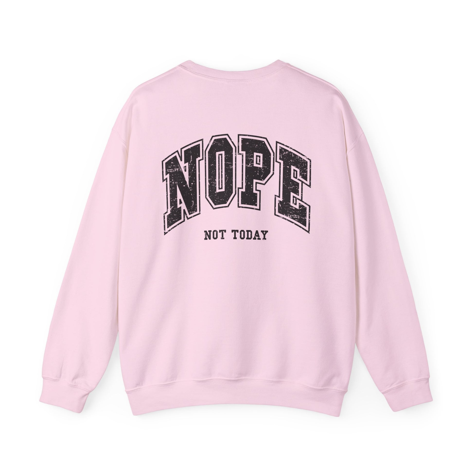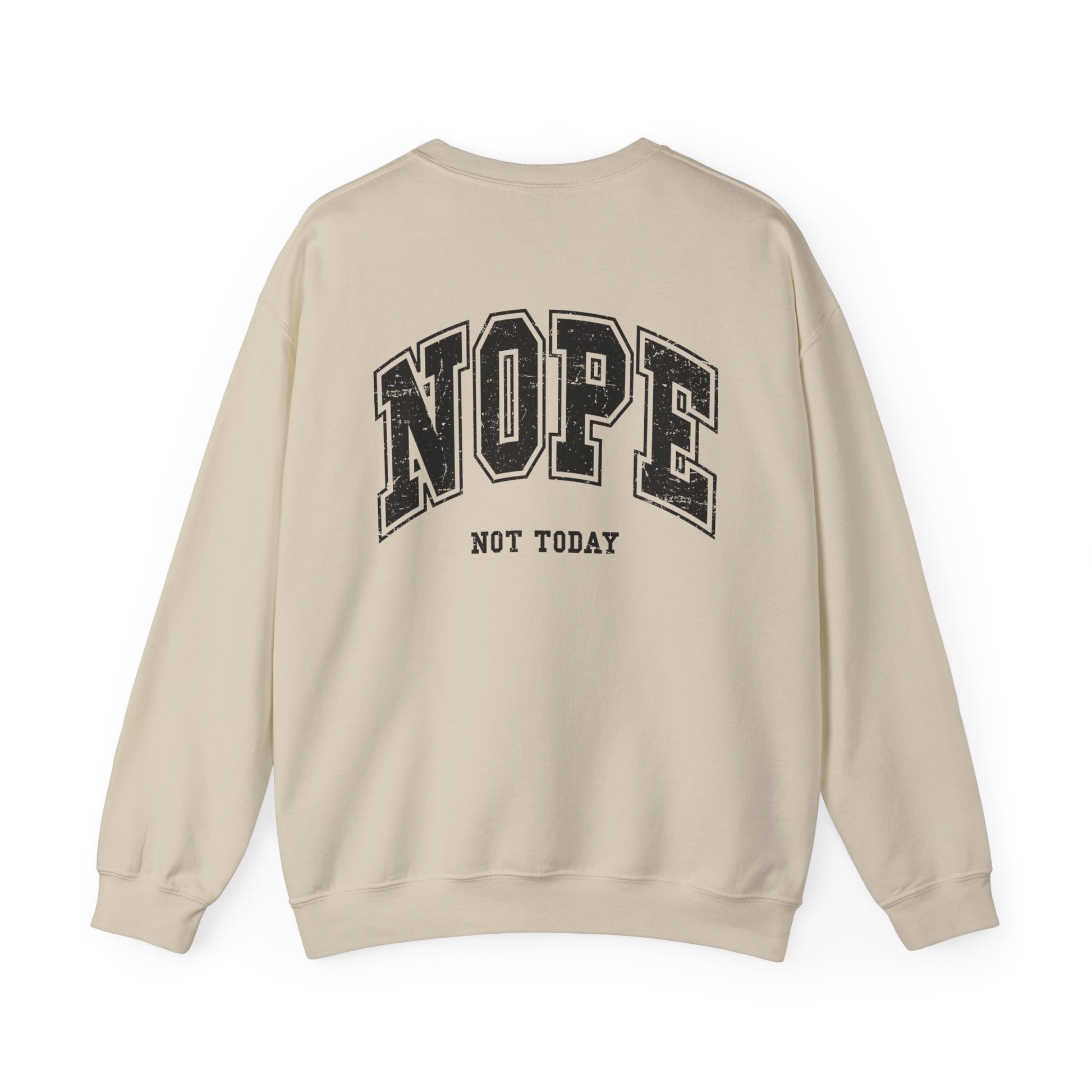 Some days just aren’t up for negotiation. The Nope Not Today crewneck features classic varsity-style lettering for an effortlessly cool, no-explanations-needed vibe. Cozy, confident, and perfect for setting boundaries without saying a word.