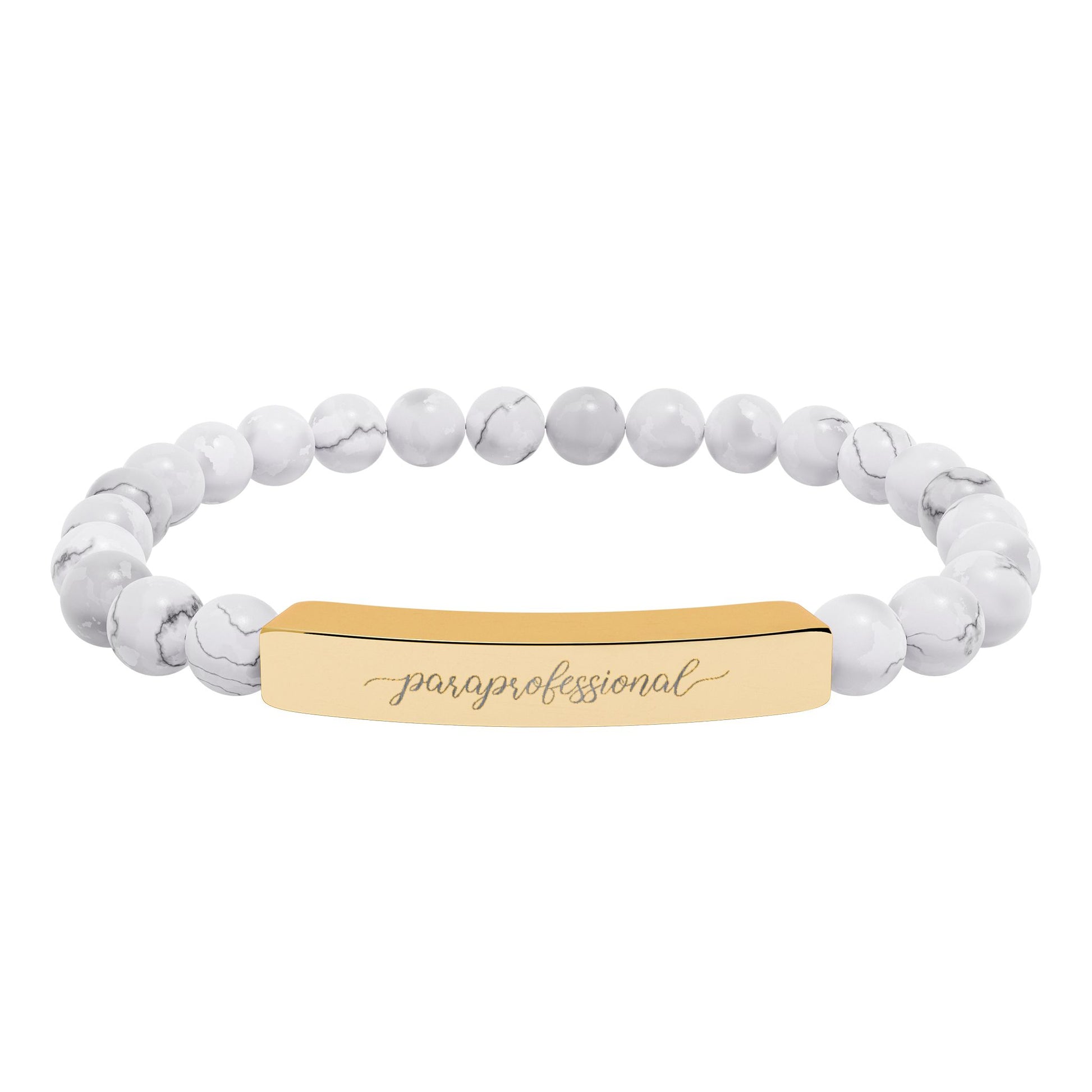 Paraprofessional Natural Stone Engraved Bar Bracelet