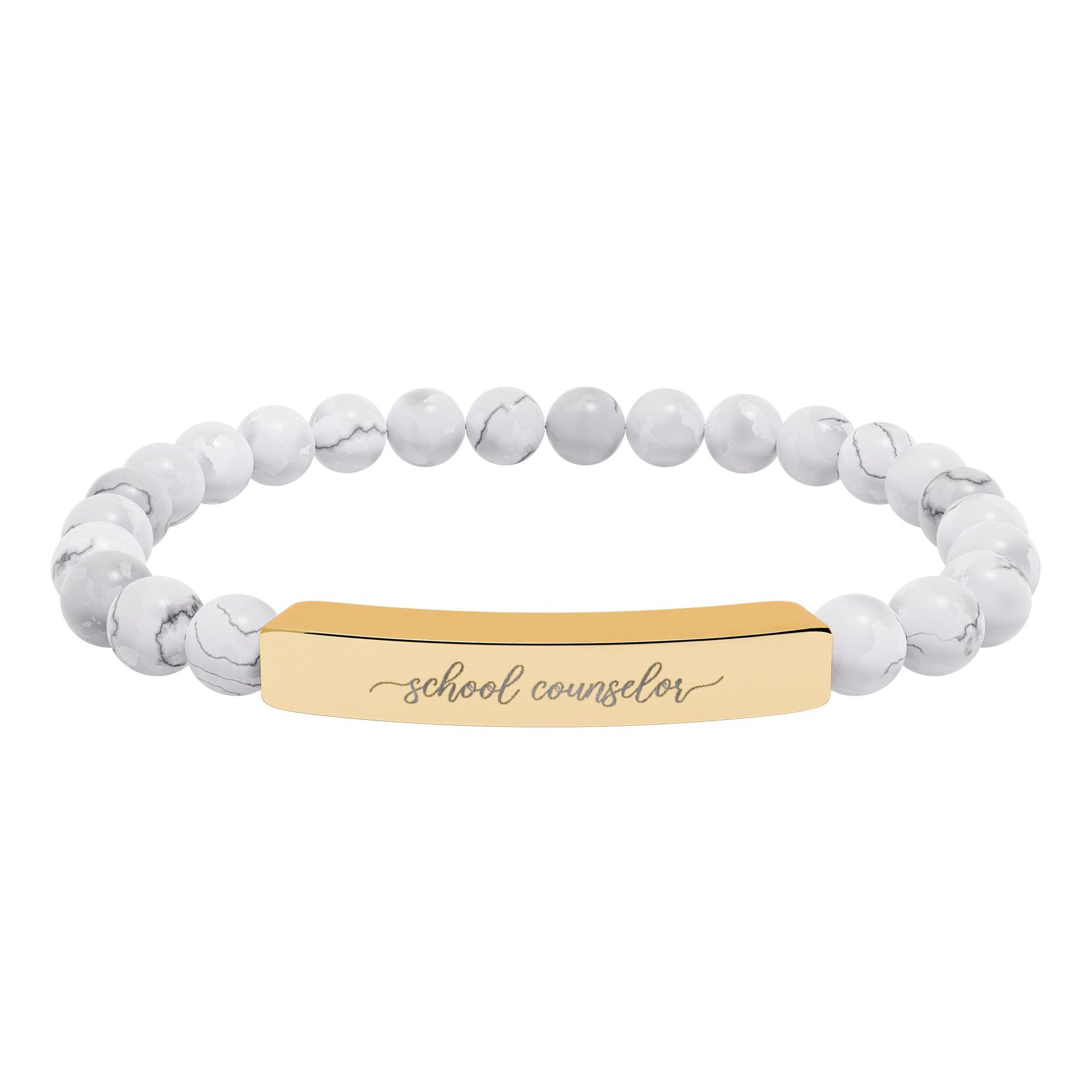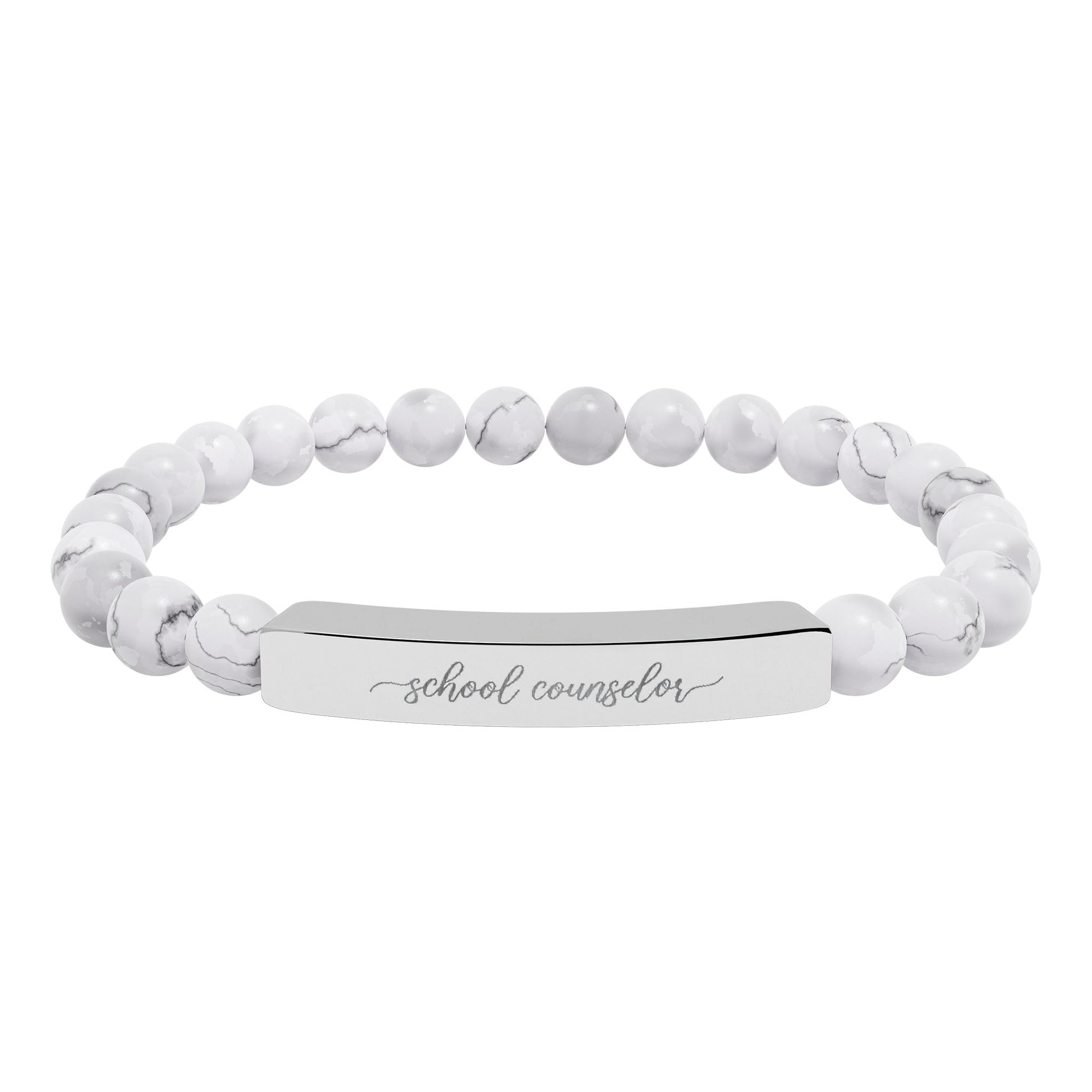 School Counselor Natural Stone Engraved Bar Bracelet