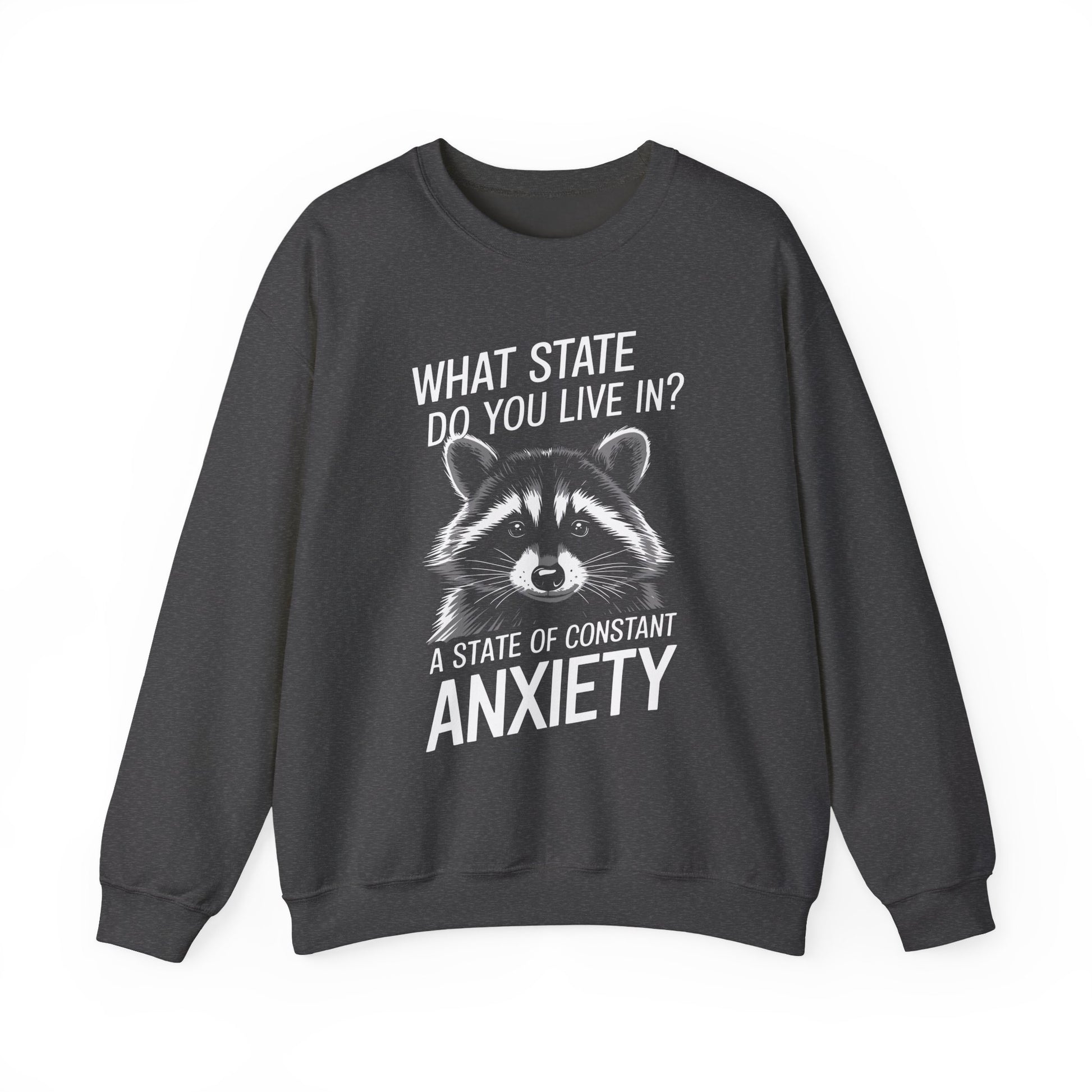 Nothing says relatable like a stressed-out raccoon. This unisex heavy-blend crewneck is for anyone who feels like their life’s mascot is a raccoon digging through the dumpster of overthinking. Cozy, quirky, and accurate, this sweatshirt perfectly captures the chaos of living in a constant state of anxiety — with a touch of humor and a lot of comfort.